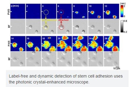 Researchers have invented a novel live-cell imaging method that could someday help biologists better understand how stem cells transform into specialized cells and how diseases like cancer spread. The Photonic Crystal Enhanced Microscope (PCEM) is capable of monitoring and quantitatively measuring cell adhesion, a critical process involved cell migration, cell differentiation, cell division, and cell death.